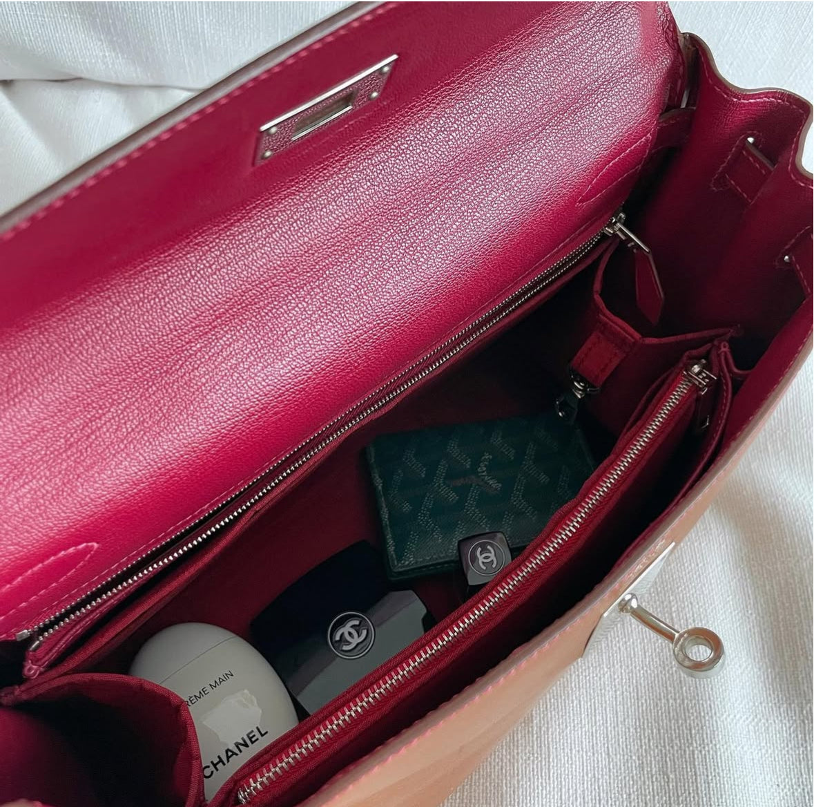 MERANDI bag insert is the perfect blend of luxury and functionality. Crafted with Thai premium silk, this practical luxury bag organizer/insert keeps all your belongings organized in your beloved Hermès, Loro Piana, The Row, Dior, Chanel, Goyard & more. Customization available.